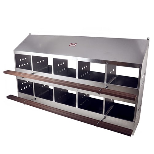 مرغ ها به صورت غریزی عادت به تخمگذاری در یک جای معین دارند، از این رو در سالن های پرورش طیور و مرغداری های مرغ مادر از لانه تخمگذار یا تله تخمگذار استفاده میشود. جنس تله های تخمگذار از ورق گالوانیزه با ضخامت 0/80 میباشد و اندازه لانه ها 33*33 می باشد.این لانه های دارای پایه های فلزی است، همچنین جهت جلوگیری از آسیب رسیدن به پرنده تمام لبه ها برگردان می باشد .